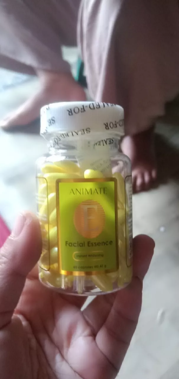 - Ambil 1 kapsul softgel Animate Facial Essence Vitamin E, lalu gunting ujungnya